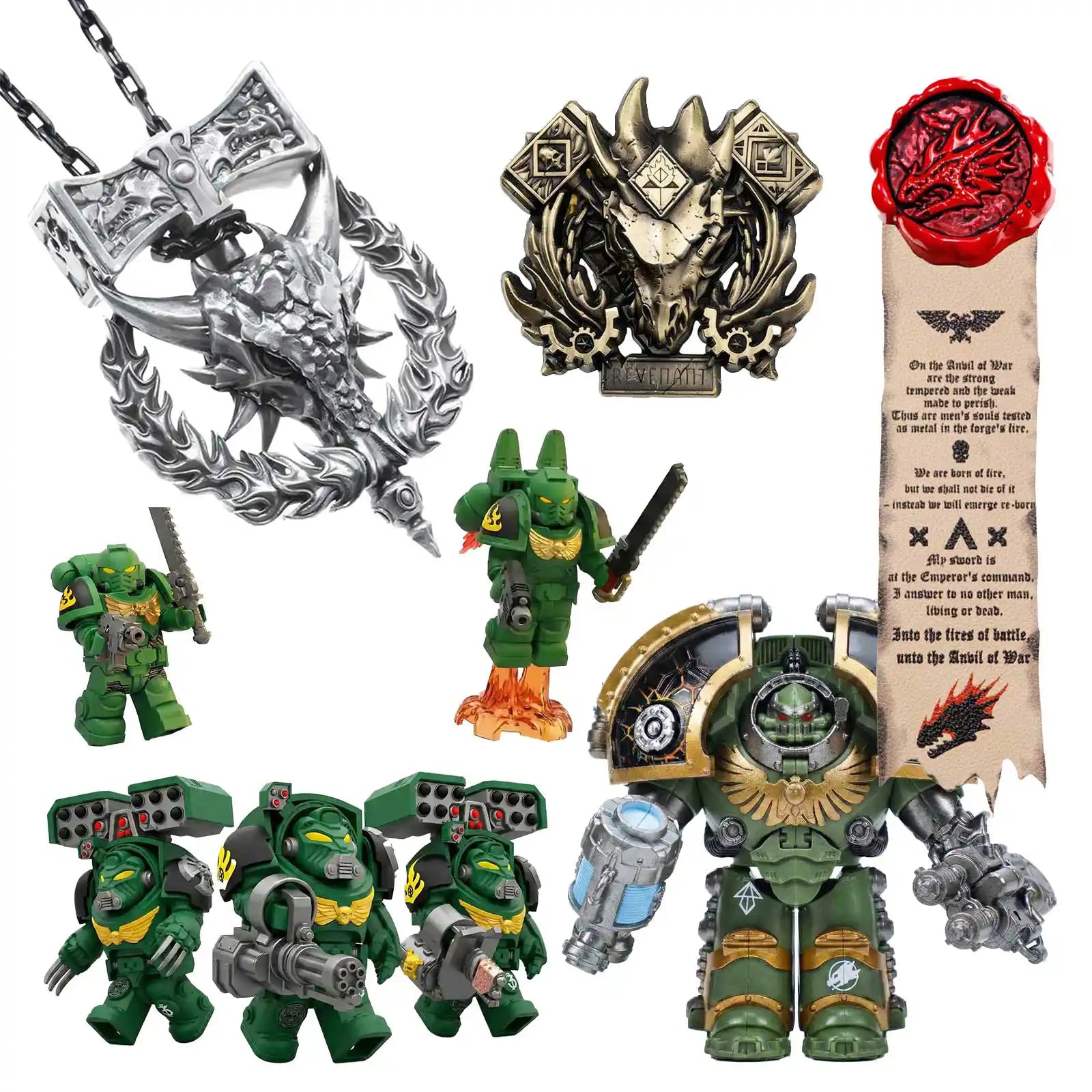 Dawnbringer Pendant + Emberbound Oath Purity Seal + Free Salamanders Terminator + Minifigure (2 minis) + Free Salamanders Chapter Icon Pin